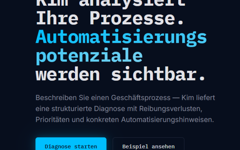 KImpuls.de ist keine klassische Agenturplattform, sondern ein interaktives System zur Analyse und Weiterentwicklung von Geschäftsprozessen. Ziel ist es, Unternehmen schnell und strukturiert aufzuzeigen, wo Automatisierung und der Einsatz von KI kon…